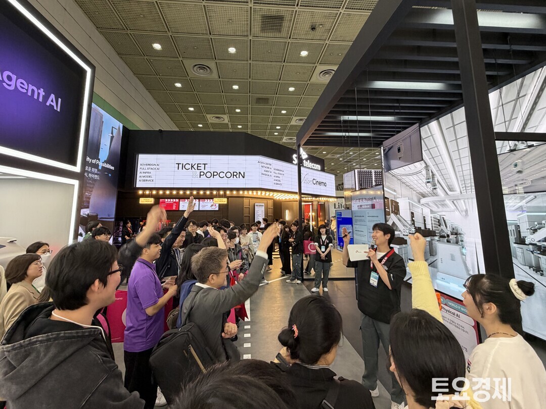 입구 쪽에서는 관람객들이 퀴즈에 참여하며 연신 웃음을 터뜨렸고 직원들은 체험 방법을 분주하게 설명했다. 부스 한편에 마련된 ‘비전 시네마’에서는 대형 스크린을 통해 미래 AI 영상을 상영했고 도슨트 투어도 함께 운영됐다.